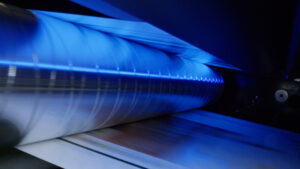 ในช่วง 20 ปีที่ผ่านมา เทคโนโลยี UV LED ได้รับการปรับปรุงอย่างมากในแง่ของประสิทธิภาพ ความน่าเชื่อถือ อายุการใช้งาน เอาต์พุต และความยาว โดยปัจจุบันหัวหลอดไฟช่วงเดียวมีให้เลือกใช้งานได้ในความยาวสูงสุดถึง 2 เมตร (78 นิ้ว) และอายุการใช้งานของหลอดไฟมักจะเกิน 40,000 ชั่วโมง นอกจากนี้ สูตรต่างๆ มากมายได้รับการปรับให้เหมาะสมโดยเฉพาะสำหรับเอาต์พุต UV LED นอกจากนี้ ตลาดยังดีขึ้นในการจับคู่ระบบ UV LED ให้ตรงกับความต้องการของหน้าต่างกระบวนการ และราคาของอุปกรณ์และสูตรต่างๆ ได้รับการปรับปรุงเนื่องจากการประหยัดต่อขนาดและการแข่งขันที่มากขึ้นตลอดห่วงโซ่อุปทาน สิ่งนี้ทำให้เทคโนโลยีการอบ UV LED ก้าวข้ามขอบเขตของการพิมพ์อิงค์เจ็ท UV แบบดิจิทัล การอบเฉพาะจุด และการสกรีน ไปสู่ความต้องการที่สูงขึ้น ความเร็วที่สูงขึ้น และการใช้งานเชิงพาณิชย์ที่กว้างขึ้น ทั้งแบบอะนาล็อกและดิจิทัล ซึ่งรวมถึงการพิมพ์แบบป้อนแผ่นและแบบออฟเซ็ตแบบเว็บ (ภาพ 1) ออฟเซ็ตแบบแห้ง เฟล็กโซ การเคลือบและการตกแต่งไม้ และการเคลือบไฟเบอร์ออปติก